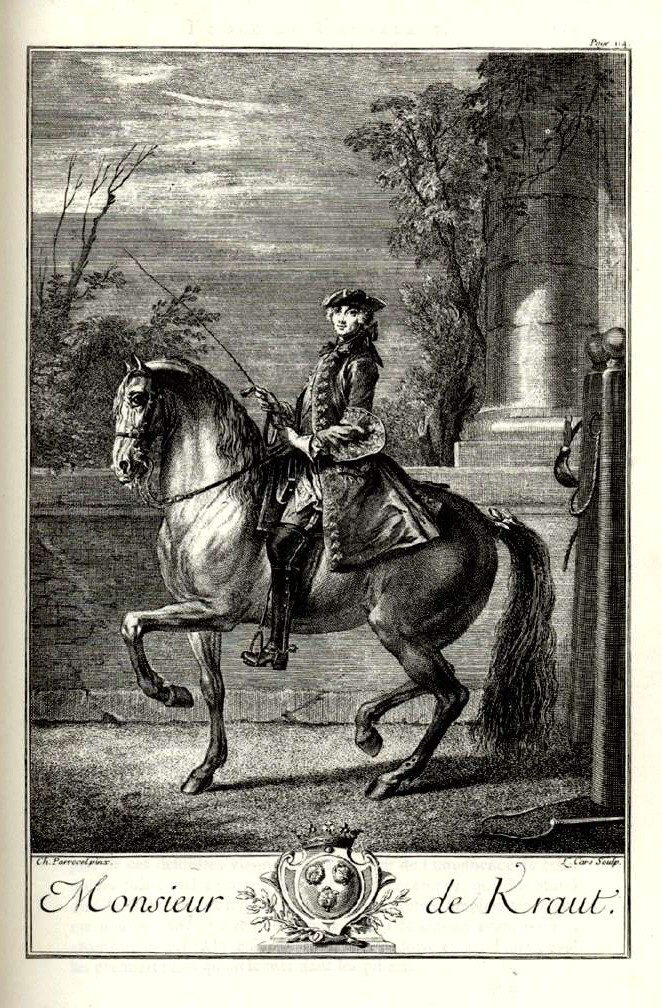 Die Kupfersiche in Guérinières Werk "Ecole de Cavalerie" sind wie in wenigen anderen Büchern über die Reiterei sowohl für die Malerei als auch für die Reitkunst von großem Interesse. Guérinière schreibt im Vorwort der Ausgabe von 1733: Nonseulement je me suis apliqué à donner des Définitions claires, nettes & précises; mais pour les rendre encore plus intelligibles, j'ai joint à cet Ouvrage des Planches qui aplaniront & leveront toutes les dificultez. Ce qui s'expose au yieux devient infinement plus sensible dans ces matieres, que tout se qu'on décrit quelqu'art que l'on y employe. [Ich habe mich nicht nur bemüht, deutliche, klare und genaue Beschreibungen zu geben, sondern um diese noch einsichtiger zu machen, dem Werk Bilder hinzugefügt, die alles verständlicher machen und alle Schwierigkeiten beheben. Was sich den Augen eröffnet wird unendlich besser wahrgenommen, als alles was man darüber schreiben könnte, soviel Mühe man auch darauf verwenden wollte.] Wir dürfen als sicher annehmen, dass Guérinière und der Maler Charles Parrocel intensiv zusamengearbeitet haben, um die reiterlichen Aspekte detailiert und präzise darzustellen. Guérinière wird keine Zeichnung akzeptiert haben, die nicht seinem Anspruch genügt hätte. Dieses Projekt soll Sie einladen, sich über die Geschichte der Reitkunst in Reaissance und Barock an den Quellen zu informieren. |
