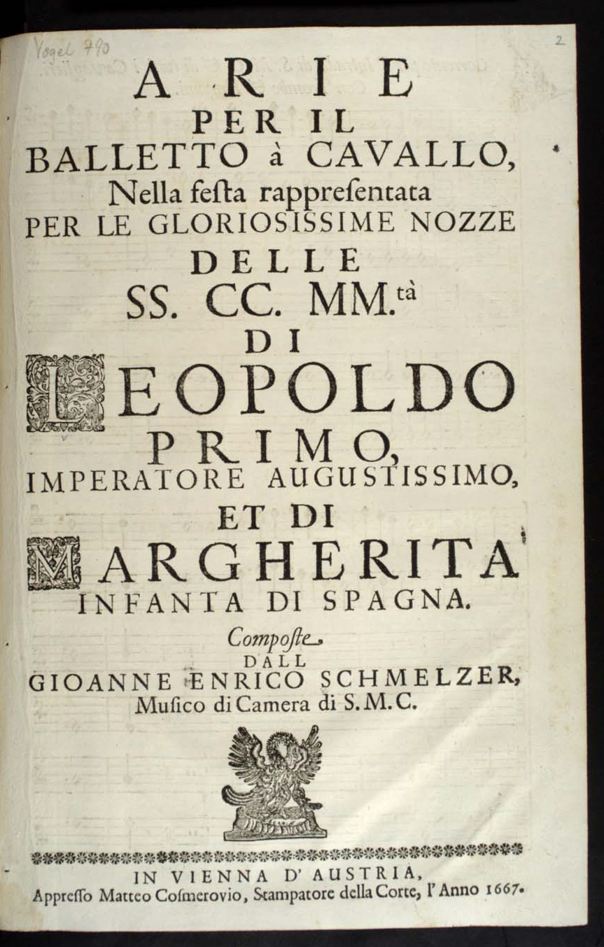![]() Titelblatt zur Musik für das Pferdeballet zur Hochzeit von Leopold I |